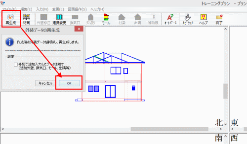 ■操作手順 1、「外装」画面の上部左側にある「再生成」ボタンをクリックしてください。 2、「OK」ボタンをクリックしてください。